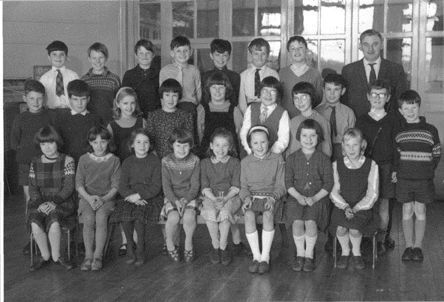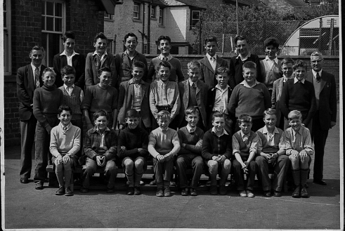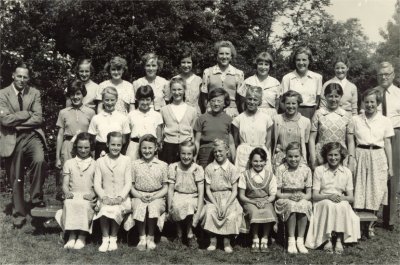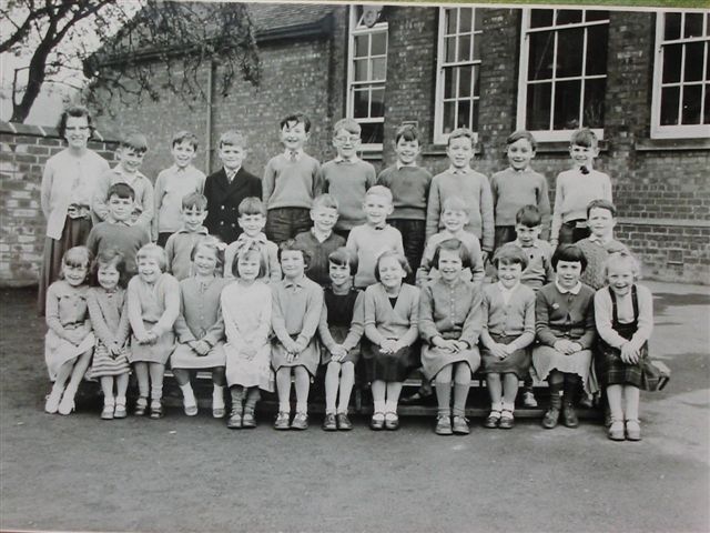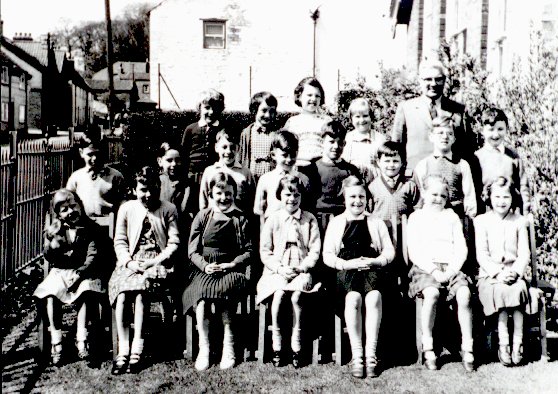 Middle Row-- Teacher Mr Hepworth Derek Robson, John Skilbeck, Margaret Wilcock, Margaret Huggins, Peter Smith, John Bartlett. Headmaster Mr Howes.